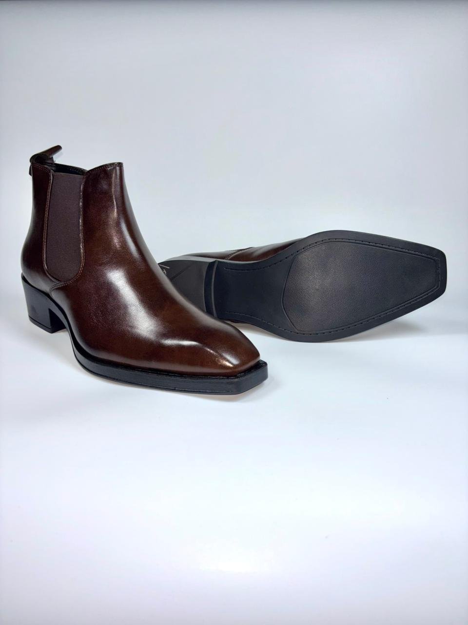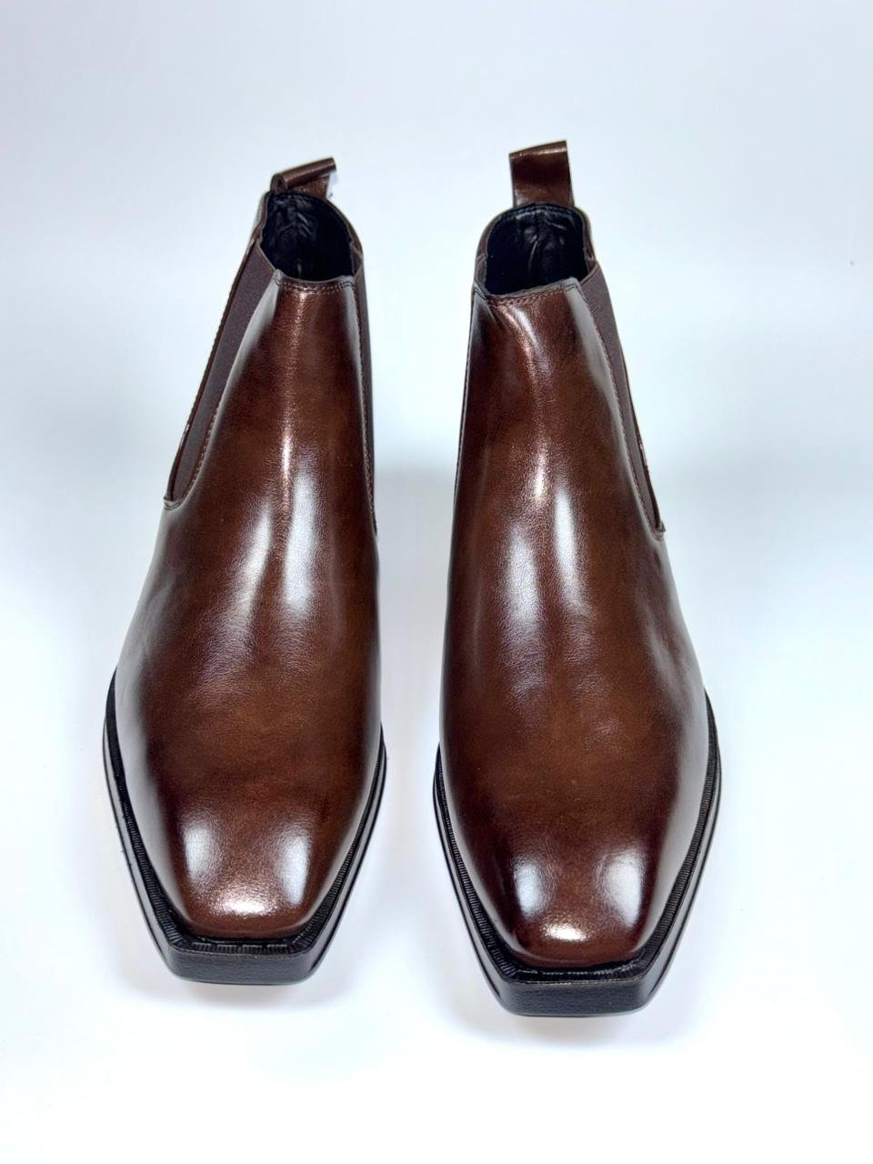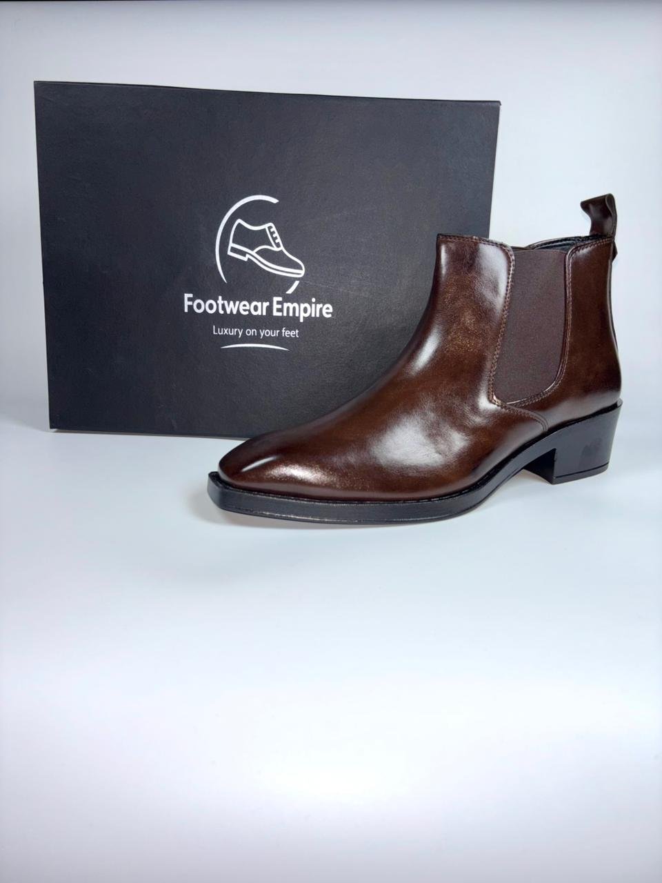 Our Italian Cuban Heel Chelsea Boots, crafted for men who demand both luxury and superior comfort. Made from premium genuine leather, these boots feature a rich brown finish with a smooth, polished texture—perfect for formal, semi-formal, and luxury casual wear.